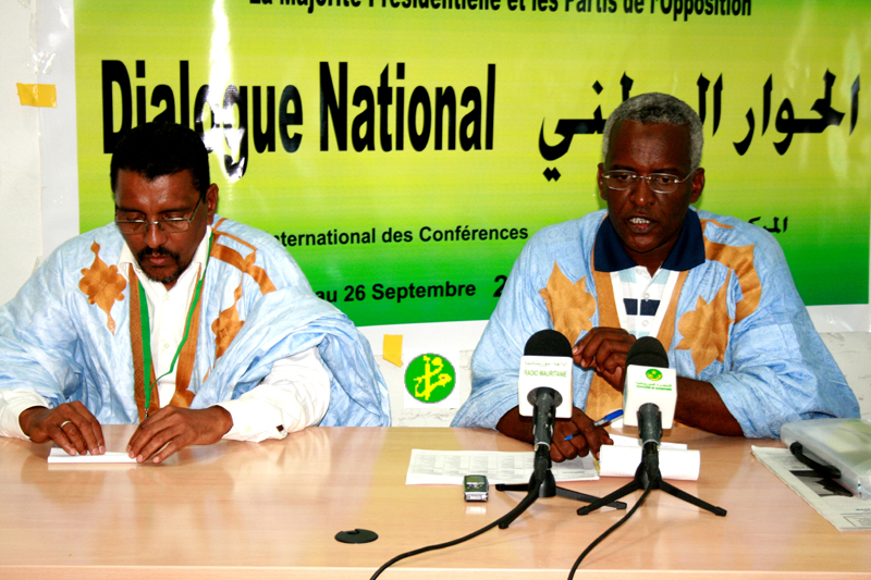 Les deux responsables à la communication des parties du dialogue national entre la majorité présidentielle et les partis de l'opposition, respectivement M. Moctar Ould Abdallahi et M. Idoumou Ould Abdi Ould Jiyid ont organisé, lundi au palais des congrès de Nouakchott, un point de presse visant à informer les médias sur les derniers développements du dialogue national. M. Idoumou Ould Abdi Ould Jiyid a indiqué que le dialogue a abordé l'unité nationale, la cohésion sociale, le code électoral, le renforcement de la démocratie, en plus de la lutte contre le terrorisme, la bonne gouvernance et le système politique "qui sont les axes de la feuille de route signée par le Président de la République et sa majorité ainsi que par l'opposition", a-t-il dit.