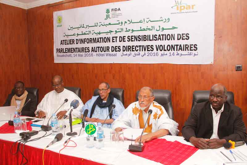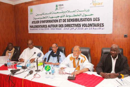 Le vice président de l'assemblée nationale, le député Yahya Ould sid'El Moustaph a, à cette occasion, souligné que cet atelier vise à sensibiliser les parlementaires sur les directives volontaires pour la gouvernance responsable en matière d'accès à la terre, à la pêche et aux forêts dans le cadre d'une lutte conséquente contre la pauvreté en Mauritanie.