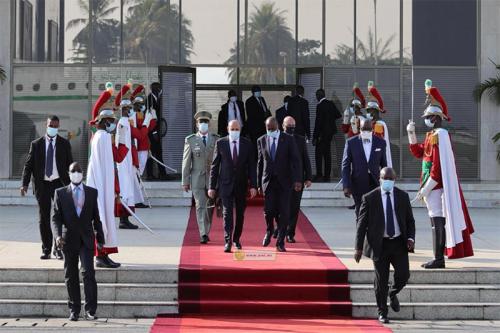 Le Président de la République, Son Excellence M. Mohamed Ould Cheikh El Ghazouani, a quitté Abidjan, lundi, pour Conakry où il doit prendre part à la cérémonie d'investiture de Son Excellence M. Alpha Condé, Président de la République de Guinée, pour un nouveau mandat.Au cours de ce voyage, le Président de la République est accompagné d'une importante délégation comprenant notamment :