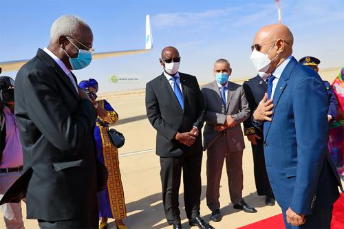 Son Excellence M. Bah N’Daw, Président de la transition malienne, a entamé ce jeudi, une visite de travail d'une journée dans notre pays.A son arrivée à l'aéroport international Oumtounsy, le Président de la transition du Mali a été reçu par son frère et ami Son Excellence M. Mohamed Ould Cheikh El-Ghazouani, Président de la République, entouré du Premier Ministre, M. Mohamed Ould Bilal, du ministre, le secrétaire général de la présidence de la République, du directeur de cabinet du président de la République, des chefs d'état-major des forces armées et de sécurité, des ambassadeurs de la Mauritanie et du Mali; du wali de Nouakchott- Ouest et de la présidente du conseil régional de la Région de Nouakchott.