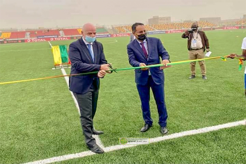 Le président de la Fédération internationale de Football Association (FIFA), M. Gianni Infantino, s'est félicité mardi 16 février 2021, de l'achèvement du nouveau stade de Nouadhibou, lors de la coupure du ruban symbolique, marquant le début officiel des matchs.La cérémonie s’est déroulée en présence des autorités administratives et municipales, du vice-président de la CAF, Constant Omari et du président de la Fédération mauritanienne de football, M. Ahmed Ould Yahya.