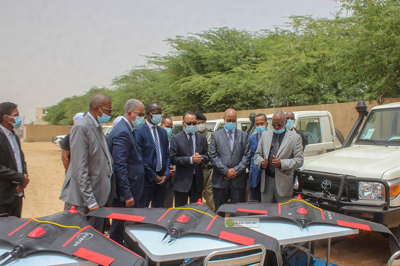 Le ministre de l’Agriculture, M. Sidina Ould Ahmed Ely a réceptionné, lundi à Nouakchott, 10 voitures tout terrain qui s’ajoutent à 11 autres opérationnelles depuis 2018, 16 drones de prospection et de lutte antiacridienne, des pulvérisateurs installés sur les voitures, des quantités d’insecticides et des équipements, dans le cadre de la force d’intervention de la région occidentale (FIRO).Le ministre a été informé, au cours de la cérémonie, sur les caractéristiques techniques des équipements présentées par le secrétaire exécutif de la force d’intervention M. Mohamed Lemine Ould Hamouny et leur importance dans la prospection, la lutte et le soutien des équipes d’intervention.