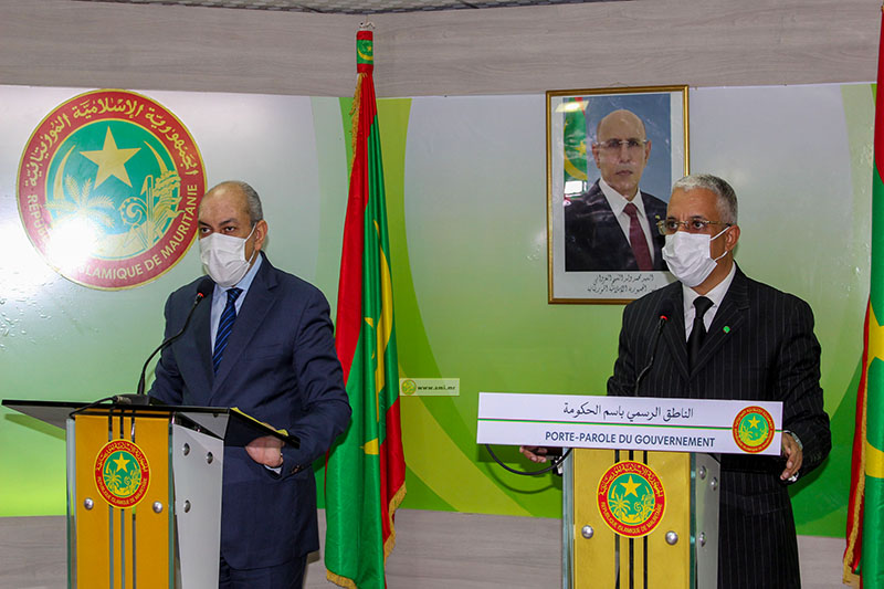 Des membres du gouvernement ont commenté mercredi soir, les résultats du conseil des ministres, tenu plus tôt dans la matinée. Il s’agit du ministre de la Culture, de la Jeunesse, des Sports et des Relations avec le Parlement, porte-parole du gouvernement, M. Moctar Ould Dahi et du ministre de la Justice, M. Mohamed Mahmoud Ould Cheikh Abdoullah Ould Boya.Le porte-parole du gouvernement a indiqué que le conseil a examiné et adopté un projet de loi modifiant et abrogeant certaines dispositions de la loi n°61.112 du 12 juin 1961 portant code de nationalité et un projet de décret définissant les modalités de prise en charge des missions à l’intérieur du pays des responsables et agents de l’État.