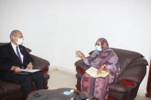 La commissaire à la Sécurité alimentaire, Mme Fatimettou Mint Mahfoudh Ould Khatry, s’est entretenue mercredi à Nouakchott, avec l’ambassadeur du Japon en Mauritanie, SE M. Norio Ehara.Au cours de la rencontre, les deux parties ont passé en revue les différents aspects de la coopération mauritano-japonaise, particulièrement dans le domaine de la sécurité alimentaire. Dernière modification : 23/06/2021 20:26:21